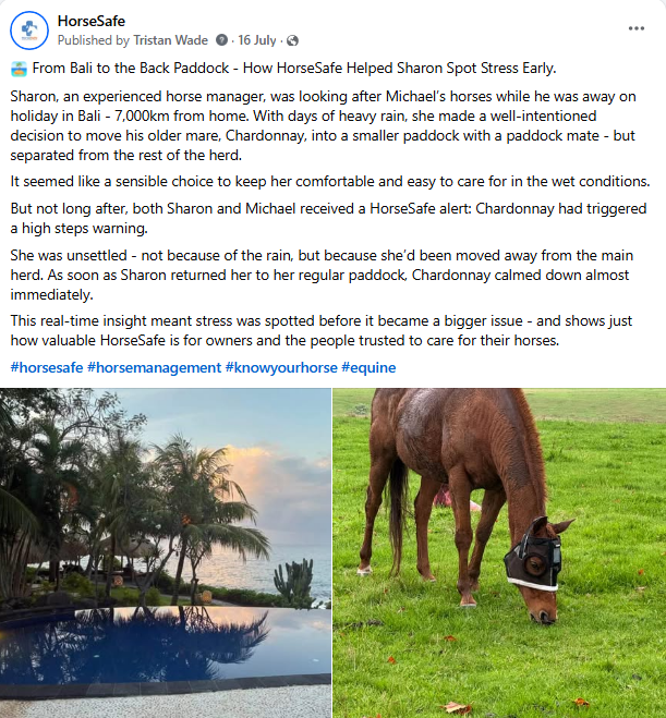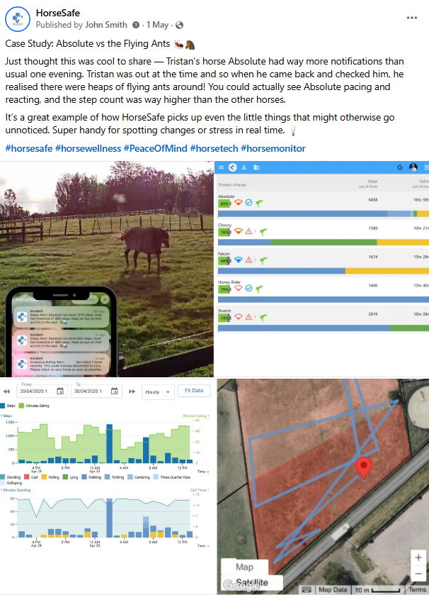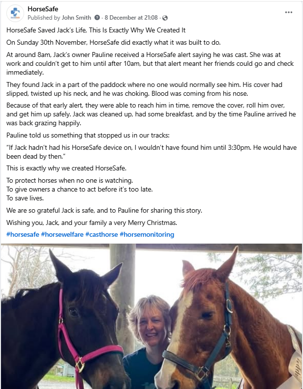 Learn about our users and customers' experiences using HorseSafe to monitor early symptoms of their horses' injury, foaling, escape, or any other abnormalities. Visit our Facebook here.